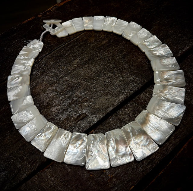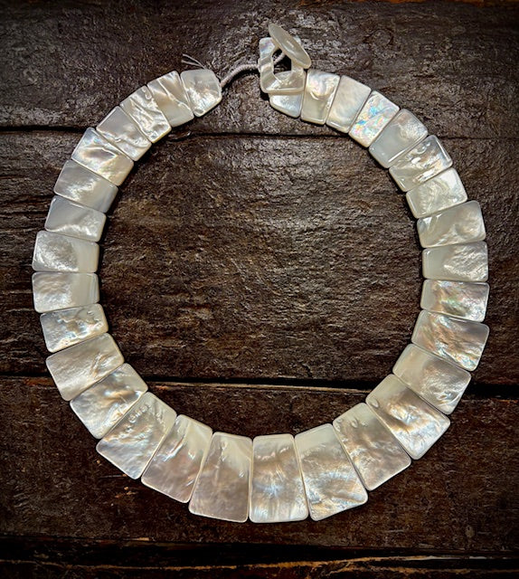 Mother of pearl necklace. Button clasp. Handmade in Indonesia.