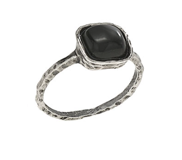 Crafted from sterling silver, this weathered band ring showcases a bold square onyx stone, offering a sophisticated and distinctive look. Its textured finish adds character, making it a refined statement piece. Please note, all sales are final with no returns accepted.