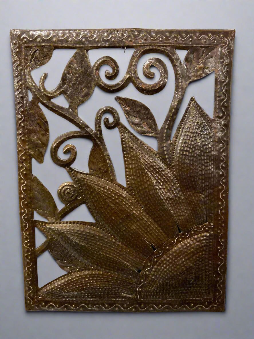 Elevate your space with our Haitian Oil Drum Art. Handmade from upcycled oil drums, each 20 x 15 inch piece is unique and supports local artisans through fair trade. Display it indoors or outdoors, as it is resistant to all weather. Add a touch of art and sustainability to your home.